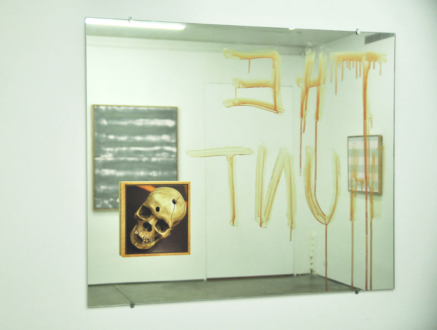 'The Hunt', 2014, mirror, photo mounted on sintra, wood, blood,